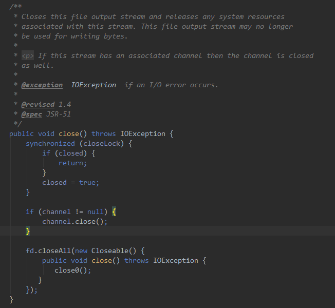 close라는 추상메소드가 정의된 Closeable 인터페이스를 구현하고 있으며,